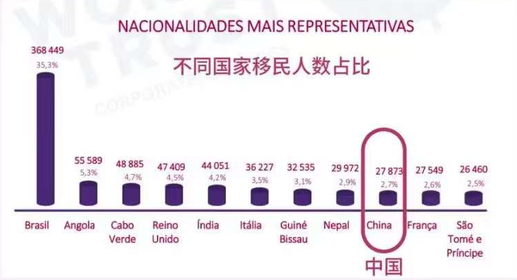 中国共27,873人申请移民葡萄牙,跻身移民葡萄牙人数占比前十大国