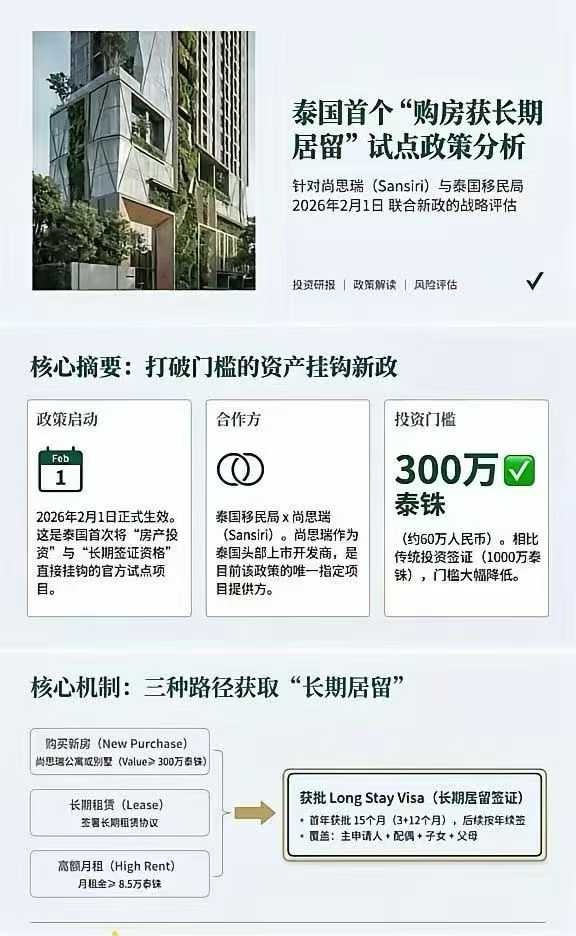 针对尚思瑞(Sansiri)与泰国移民局2026年2月1日联合新政的战略评估